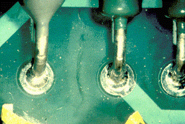 圖1:由于除氣導(dǎo)致的下沉焊點。